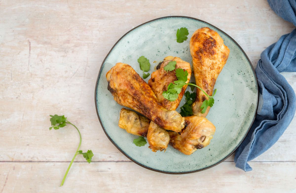 Brush the marinade evenly all over the chicken drumsticks. Transfer the tray to the oven and bake for 35 minutes, turning halfway through. The chicken should be entirely cooked through, and the juices run clear. The skin should be crisp and golden all over and slightly caramelized. Serve with your preferred Keto sides.