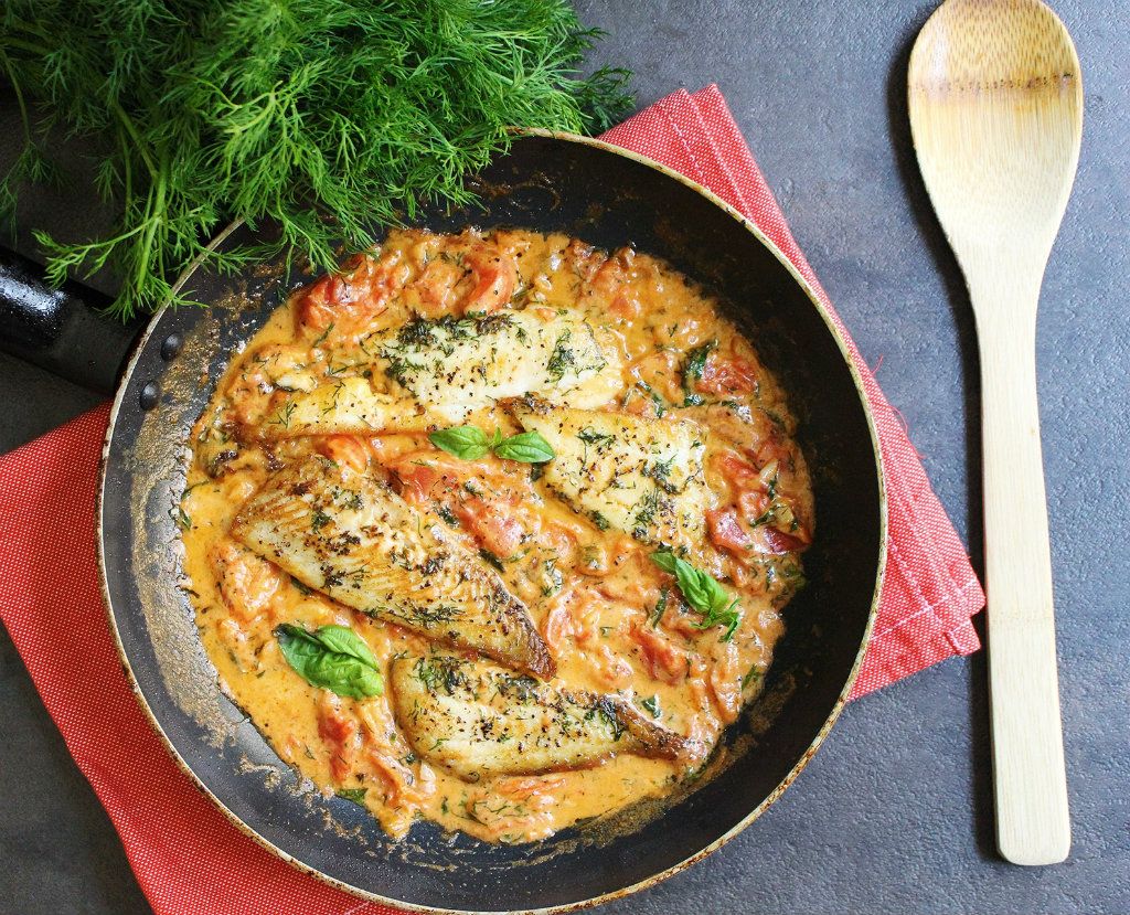 Low Carb Pan Roasted Flounder with Tomato Cream Sauce