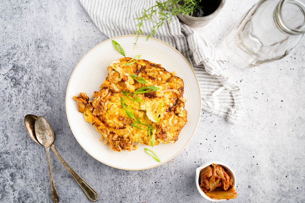 On the Keto diet, you can never find enough ways to switch up eggs! Fortunately, there are so many ways to cook eggs and flavor them. Keto Kimchi Omelette is a delicious way to spice things up. Scrambled eggs are cooked with sauteed spicy, tart kimchi and then topped with sliced scallions at the end. The kimchi adds a nice fermented flavor to the eggs and would be delicious with an assortment of sides.
