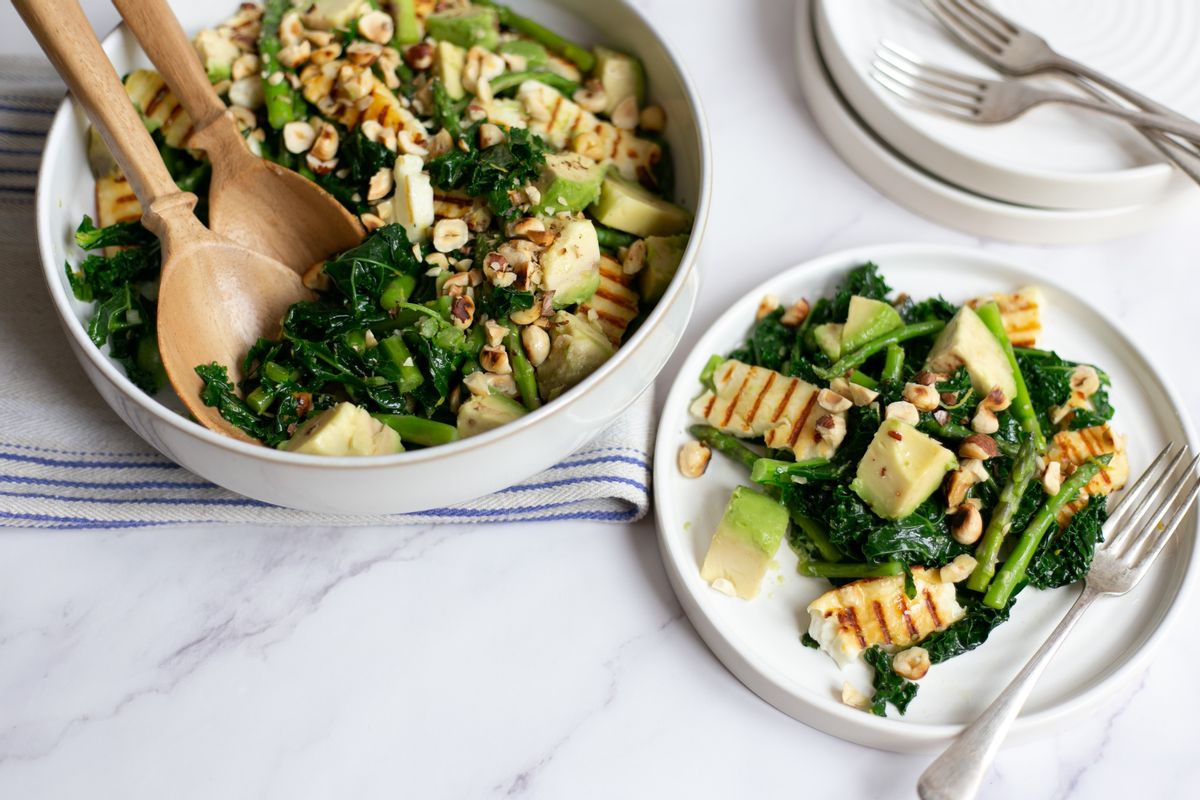 Keto Avocado Salad with Asparagus, Kale and Halloumi